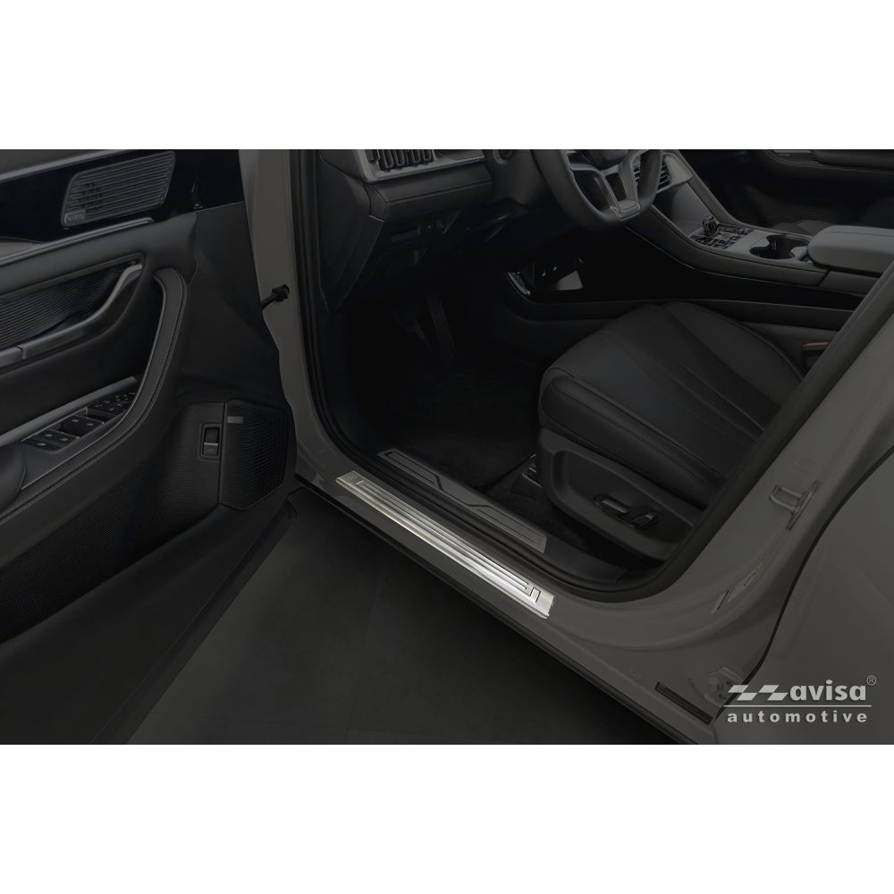 If you answered yes to the above points, our entry guards are the perfect accessory for you and your car. They are both protective and look great as a decorative element. They are resistant to extreme temperatures (temperature -40°C / +50°C) and even resistant to moisture. Our entry guards are not the typical entry guards found in many places, as our guards are made of brushed stainless steel. The guards are mounted with the attached double-sided tape, which is placed on all edges of the entry guards.