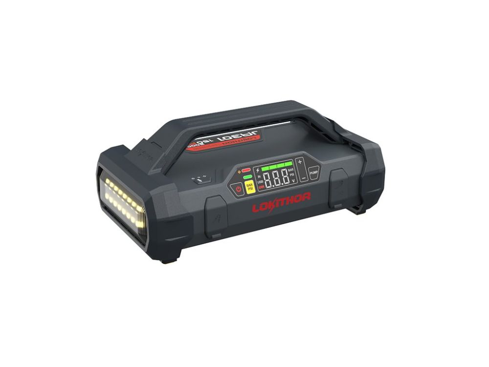 Lokithor JA301 is a powerful 4-in-1 multifunction unit that combines a jump starter, air compressor, power bank and LED torch in one compact and practical design. This makes it the ideal solution for the car, workshop, or as permanent equipment in the boot. It delivers an impressive starting current of 2,000 amps after a full charge and can handle up to 40 starts on a single charge. JA301 is compatible with a wide range of vehicles, including passenger cars, motorcycles, boats, motorhomes, ATVs, SUVs, vans and tractors. It starts 12V vehicles in seconds and handles engines up to 8.0 litres petrol and 6.0 litres diesel.