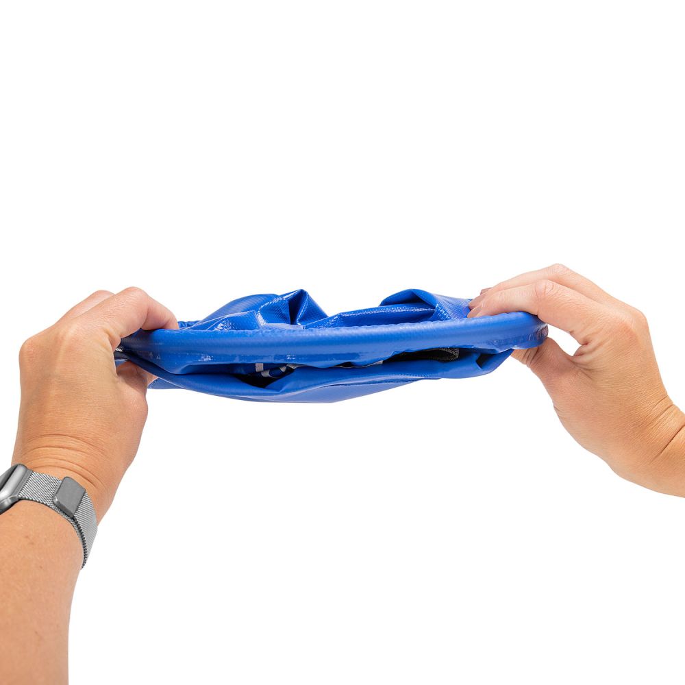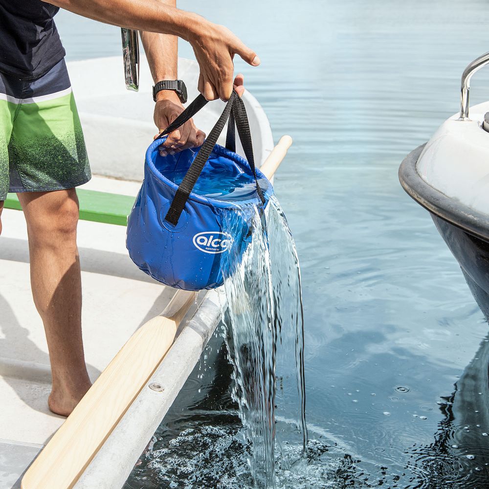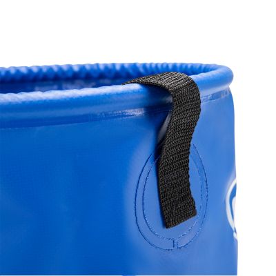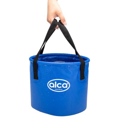 When the bucket is unfolded it is rigid, due to the stiffness and with the strong chrome handle the bucket remains rigid even when filled with water. The wash bucket has a capacity of 15 liters.