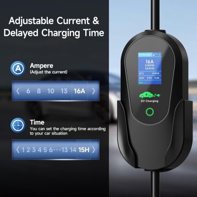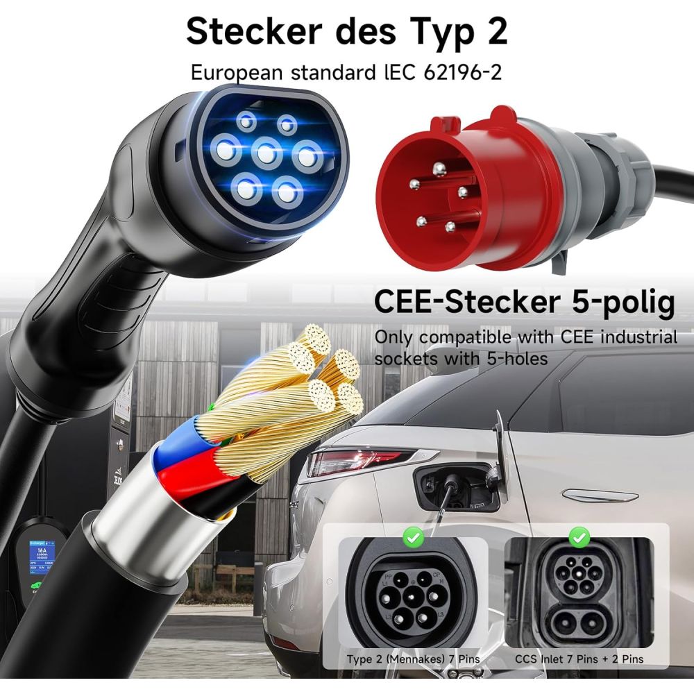 You can choose the current between 6, 8, 10, 13, and 16A according to your needs. Through the accompanying app, you get access to functions such as remote control of delayed charging, power adjustment, and the ability to stop charging directly from your phone. The charging box is widely compatible and can be used for all European electric and hybrid cars that follow the IEC 62196-2 standard.