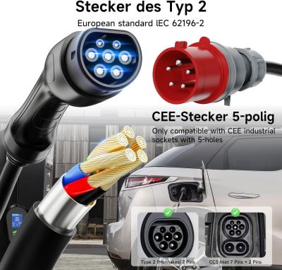 Widely compatible with all electric and hybrid cars according to IEC 62196-2 (Type 2 standard)