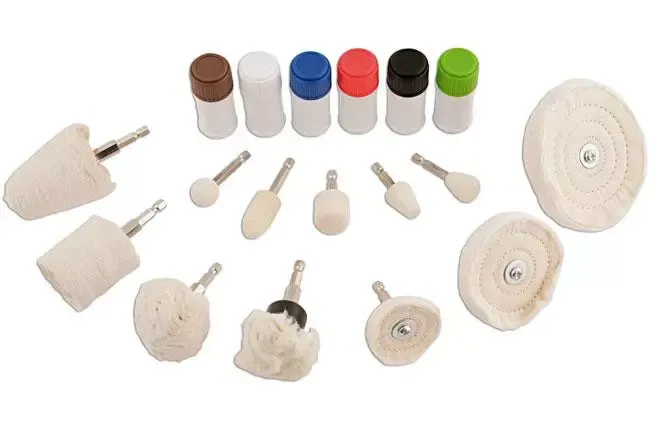 Gunson 77097 is a quality polishing kit. The kit consists of polishing heads and hard polishing wax suitable for polishing a variety of materials, including aluminum, steel, stainless steel, brass, as well as most types of plastics.